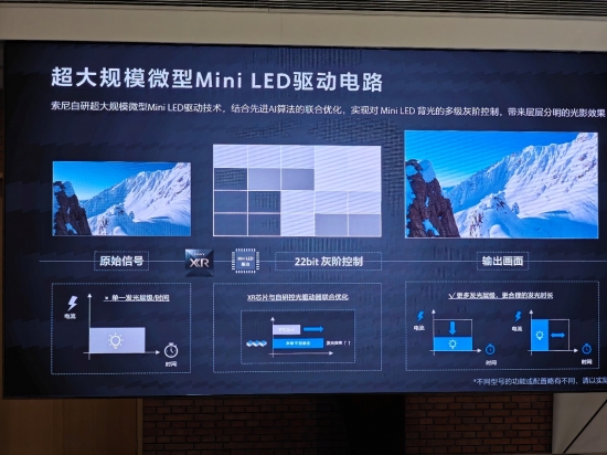 其实年初就一直有传言说索尼在今年即将推出颠覆性的Mini LED产品。如今这个消息也算是正式官宣。新品索尼电视9系是Mini LED旗舰产品,搭载了索尼最高规格的Mini LED控制技术,其中的最为重要的技术,索尼将其命名为22bit灰阶控制技术。