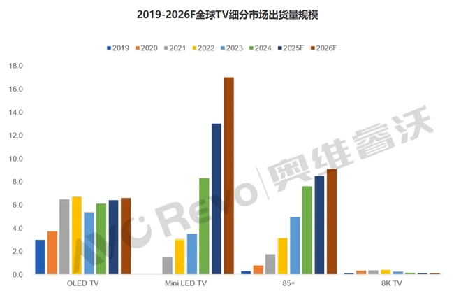 面对RGB-Mini LED的强势冲击,曾占据高端市场主导地位的OLED正面临边缘化困境。奥维睿沃预测,2026年OLED电视出货量约660万台,仅能实现小幅增长,而供应链弹性不足、价格居高不下等问题始终难以破解。更值得关注的是,OLED品牌阵营近年来持续收缩,多家主流品牌退出赛道,进一步削弱了其市场推力。
