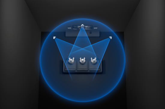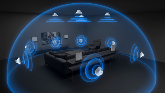索尼 A9M2 最核心的创新,当属分离式无线布局 + 360 智能穹顶声场 2.0,彻底解决传统家庭影院布线繁琐、声场局限的痛点。它采用四个独立无线音箱,无需复杂布线,每个音箱仅需连接电源,就能灵活摆放在房间四角,真正实现物理环绕,解放家居布局,不用再为放置长条主机烦恼。依托先进算法,系统能精确计算每个音箱到墙壁、天花板的距离,探测房间环境,生成多个幻象扬声器,形成超越实体音箱范围的广阔环绕声场,让房间里更多位置都能体验到参考级环绕声效果。搭配每个音箱内置的穹顶扬声器,通过天花板反射模拟虚拟顶置声道,无需额外安装天空箱,就能实现杜比全景声的 “垂直” 声场,飞机掠过头顶、雨滴洒落的音效真实可感,沉浸感拉满。这个功能解决了传统家庭影院布线复杂、占用空间,声场固定、沉浸感局限,需额外安装天空箱的痛点,让小户型也能轻松打造专业级环绕声场。