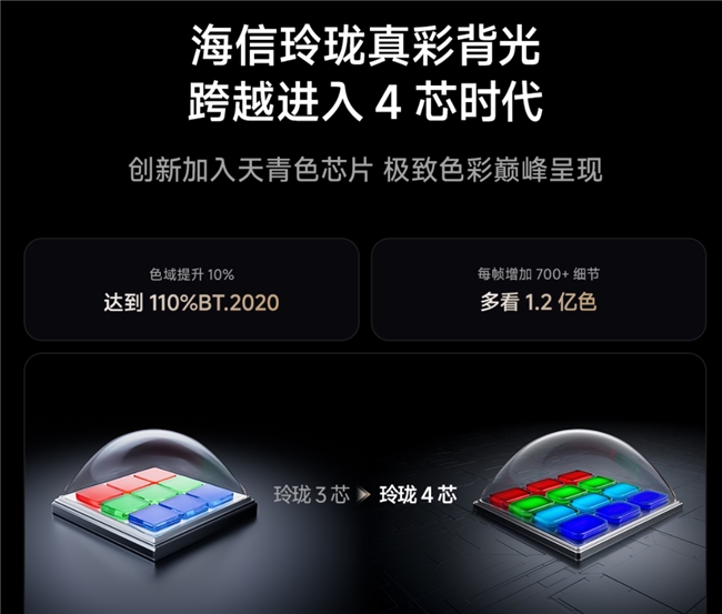 很多人看到这里都会好奇,这台被央视点赞、两会背书的超旗舰,实际体验到底能带来什么不一样的感受?答案就藏在它全球首创的玲珑4芯真彩背光技术里——这套技术正是基于前面提到的两颗自研“中国芯”升级而来,也是它能解决行业画质顽疾的核心底气。咱们普通人选电视最怕的画面色彩不准、亮部有光晕、暗部没细节、用久了还褪色,这些困扰行业多年的痛点,海信直接靠这套技术一次性解决了。